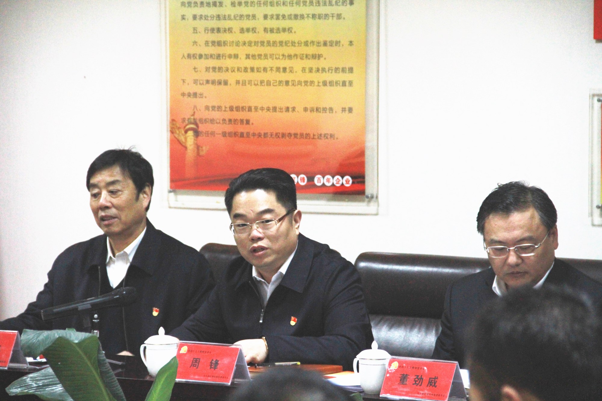 11月14日上午10時(shí)許,西安市副市長(zhǎng)、碑林區(qū)委書(shū)記董勁威同志來(lái)到紅鋒集團(tuán),為企業(yè)黨員職工宣講黨的十九大精神,隨行的有區(qū)委常委、宣傳部長(zhǎng)柳春林同志,區(qū)委辦副主任張博同志,太乙路街道黨工委書(shū)記劉寶同志,太乙路街道黨工委副書(shū)記、辦事處主任王國(guó)榮同志,太乙路街道辦事處副主任梅省來(lái)同志等同公司黨員職工30余人一起聆聽(tīng)了宣講報(bào)告。紅鋒集團(tuán)黨委書(shū)記、董事長(zhǎng)周鋒主持了會(huì)議。