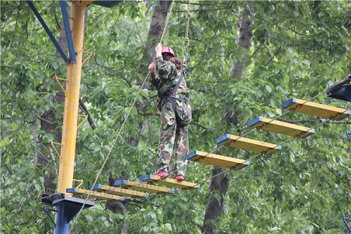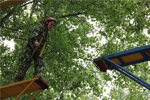 首先進行的科目是高空斷橋和緬甸橋,雖然許多同志高空恐懼,但在隊友們的鼓勵下,以勇氣挑戰(zhàn)自我,以自信挖掘潛力,最終無一退縮,全部通過。用事實證明了沒有克服不了的困難。
